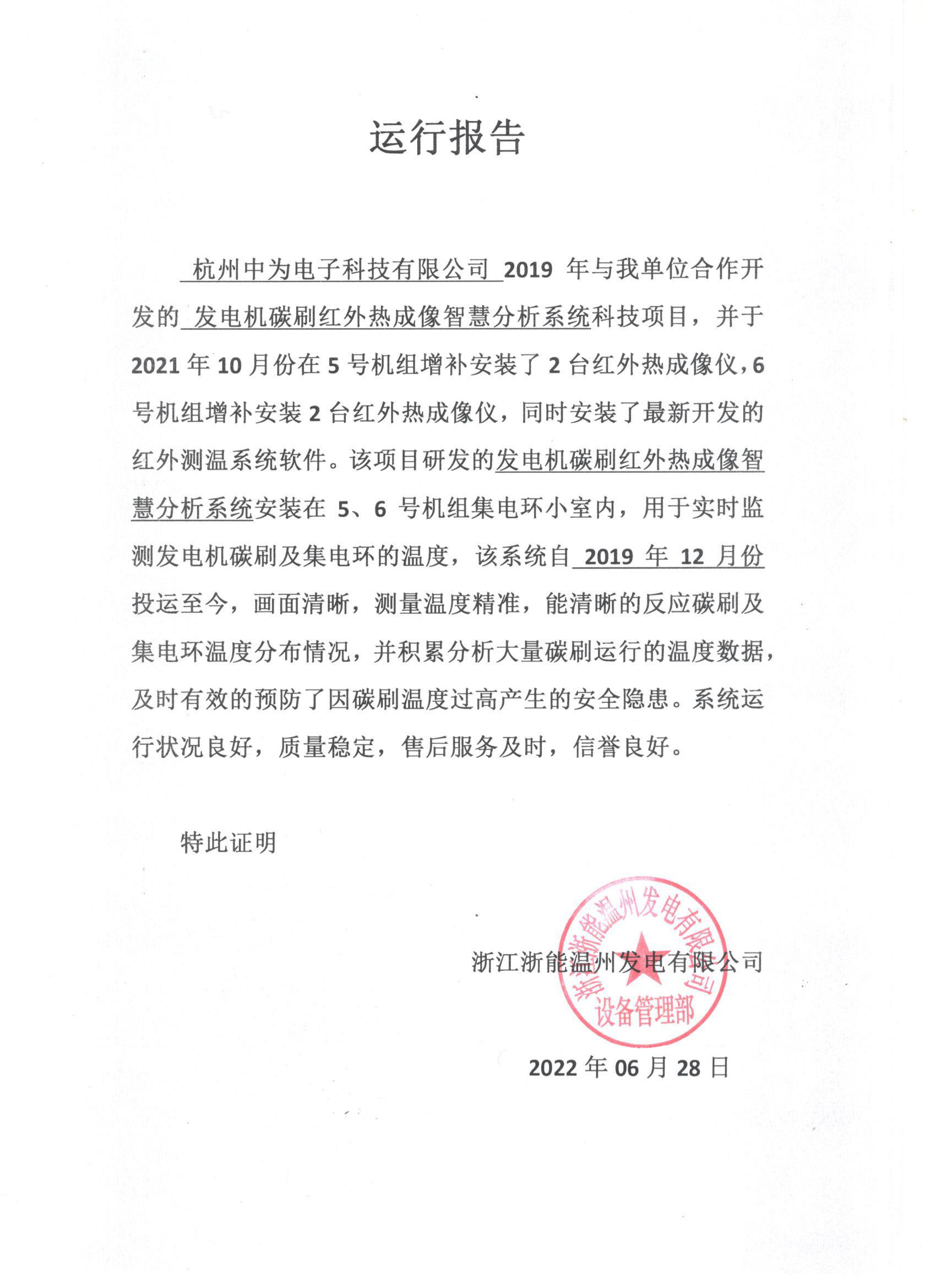 浙江浙能溫州發電有限公司5、6號機組加裝發電機碳刷紅外熱成像智慧分析系統