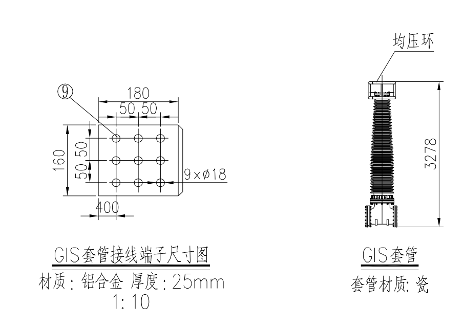 以下圖為例,施工現場進行GIS套管一次設備連線安裝,套管接線板厚度δ=25mm,設計采用的金具型號為SSY-400A/200(180*160)。根據設計圖紙上廠家提資一次接線板厚度(圖二)和金具手冊上金具接線板厚度(圖三),核算GIS套管連線端子所需熱鍍鋅螺栓總長度。