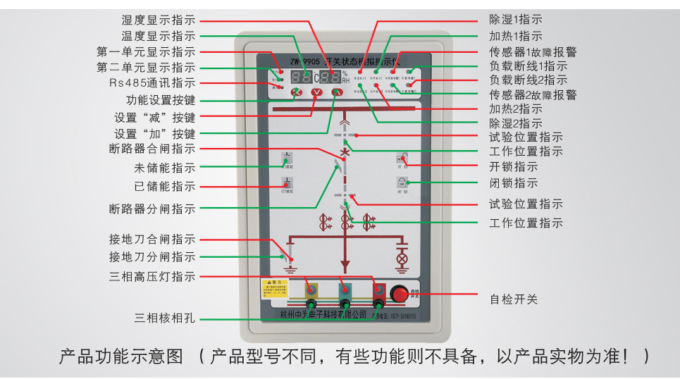 工作位置觸點(diǎn)閉合時(shí),紅色垂直模擬條點(diǎn)亮,顯示斷路器位于工作位置;試驗(yàn)位置觸點(diǎn)閉合時(shí),綠色水平模擬條點(diǎn)亮,顯示斷路器位于試驗(yàn)位置。